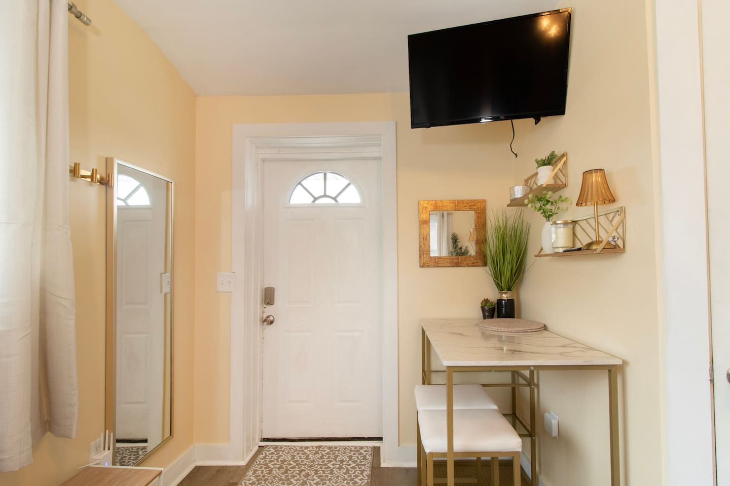 Enjoy a stylish experience at this centrally-located studio in Groton. Small and cozy, yet bright and modern, this Groton studio is ideal for solo travelers or couples. Thoughtfully designed to maximize space and comfort, it features contemporary décor, plenty of natural light, a compact kitchenette, and a sleek bathroom. Centrally located near the naval submarine base, the waterfront, casinos and easy access to Mystic, New London, and local attractions—this small space offers big comfort.